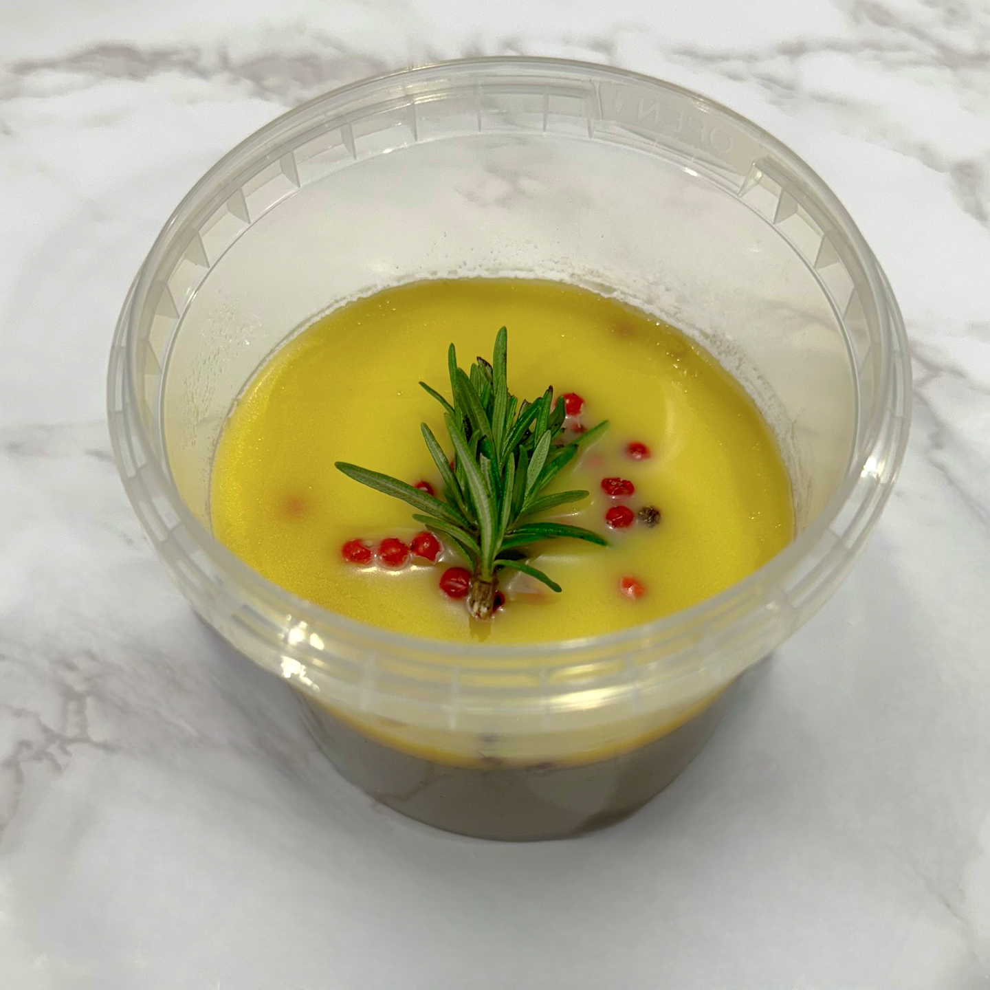 Let's start with the pickle. Add the water, olive oil, white wine vinegar, white wine, coriander seeds, star anise, tarragon and bay leaf to a heavy base pot and bring to the boil. Once on a rolling boil, bring to a simmer.